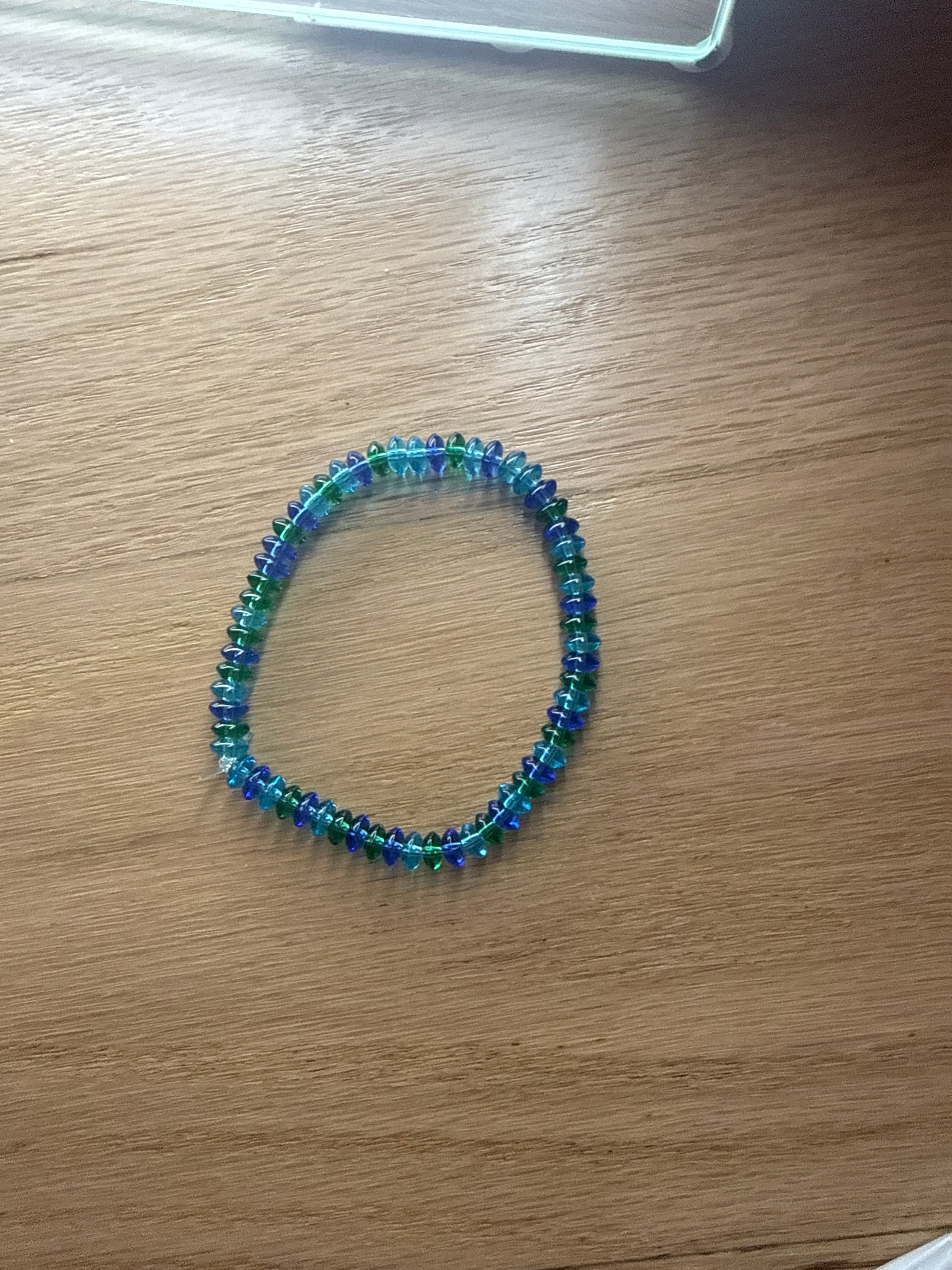 Transform your style with our River bracelet. Crafted with small dark blue, light blue, and green beads that mimic the mesmerizing colors of a serene river. Perfect for any occasion, its beauty shines in the light. Elevate your look and captivate with this eye-catching piece.